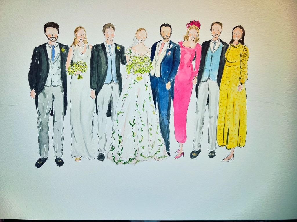 I illustrated for 8/9 hours on the day and Cordelia had a lot of extras that needed posting, but she also requested a family portrait, which I think looks beautiful and sums up her day well. Whimsical, relaxed and happy.
