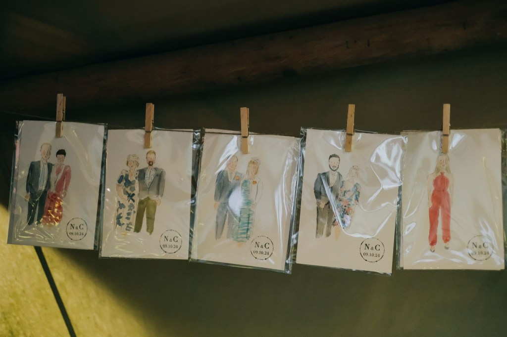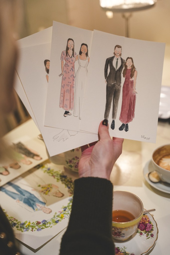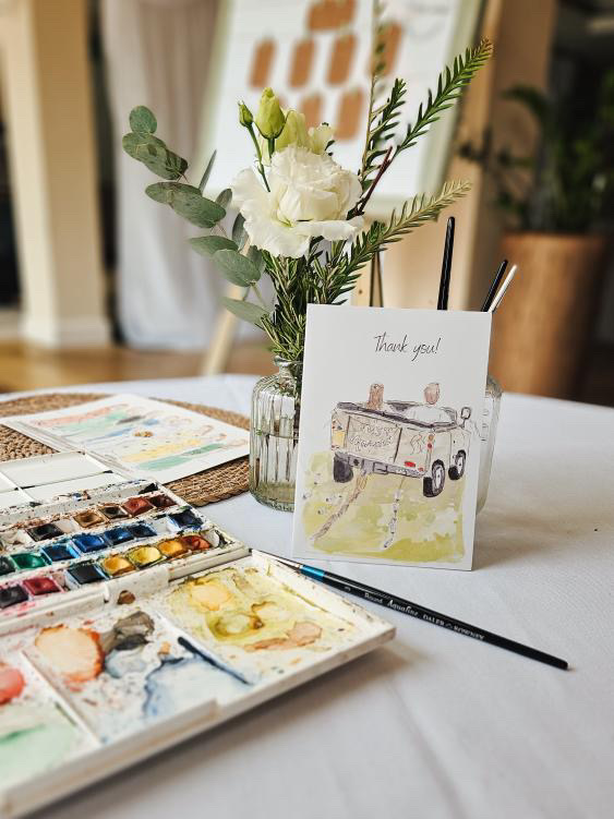 Can’t make your special day? Why not have pre drawn illustrations of you guests as wedding favours? Pop me a message with the size of your guest list and I can work out a bespoke quote for your day.