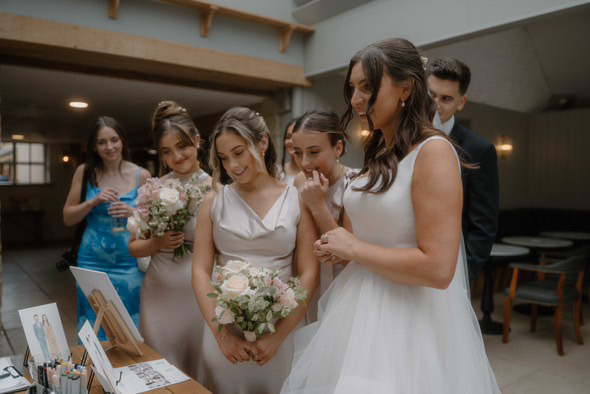 Starting from when your guests arrive, I will blend in taking photos ready to get illustrating. Illustrations take me between 5 to 20 minutes depending on group size, and I illustrate from photos so no one has to stand and wait.